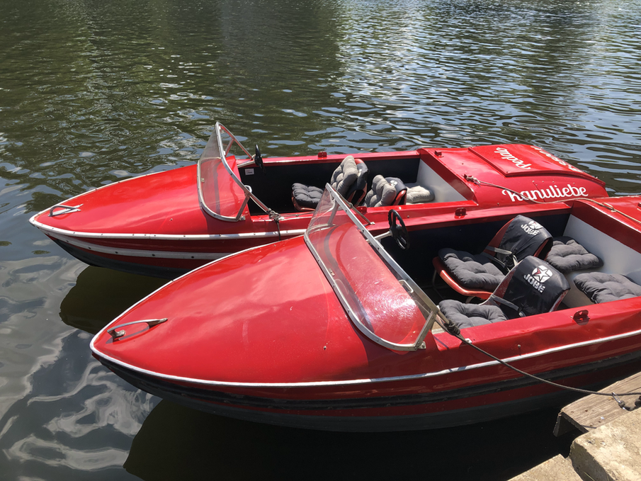 No, we don't have any motor boats - even if it looks like this: We have been collecting, maintaining and restoring classic pedal boats from the 50s to 80s for 10 years now: all as stylish as Italian speedboats, only completely emission-free! They originally come from Bavaria: Barro is the name of the shipyard that has been building aluminum boats since 1955 until today.